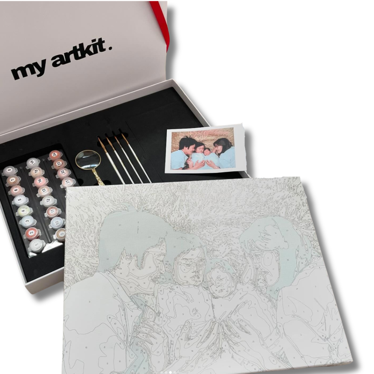 ※ご指定の画像はシステムの性質上、人物の顔を中心に拡大され、アスペクト比3:4で自動的に補正された画像をもとに絵画体験キット(ペイントバイナンバー)として製造されます。